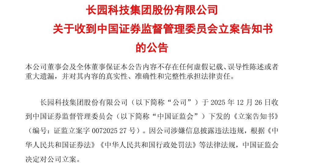ST長(zhǎng)園:因涉嫌信息披露違法違規(guī)被立案