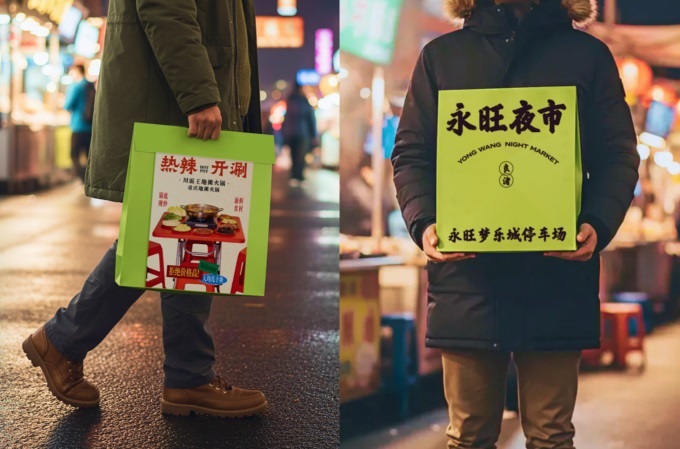 永旺夜市通過(guò)“AI美食海報(bào)+打包袋”的輕量化宣傳,人氣再創(chuàng)新高。