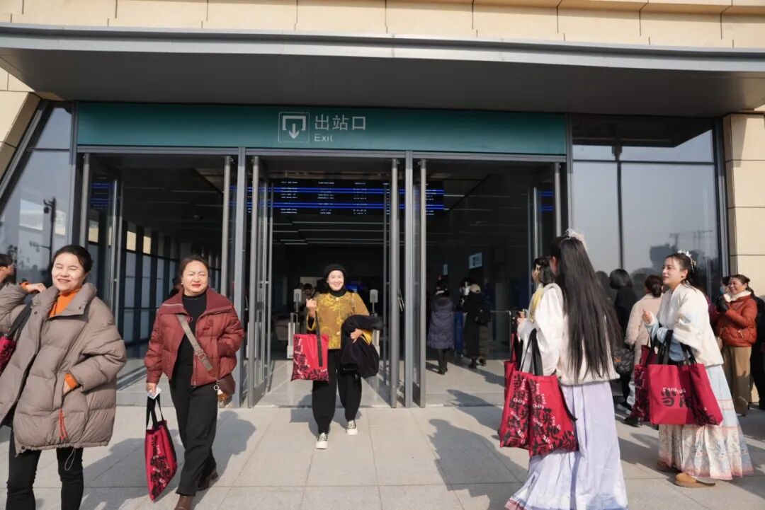 10時(shí)44分,首批旅客從當(dāng)陽(yáng)西站出站口走出,開啟了當(dāng)?shù)馗哞F出行的新篇章。