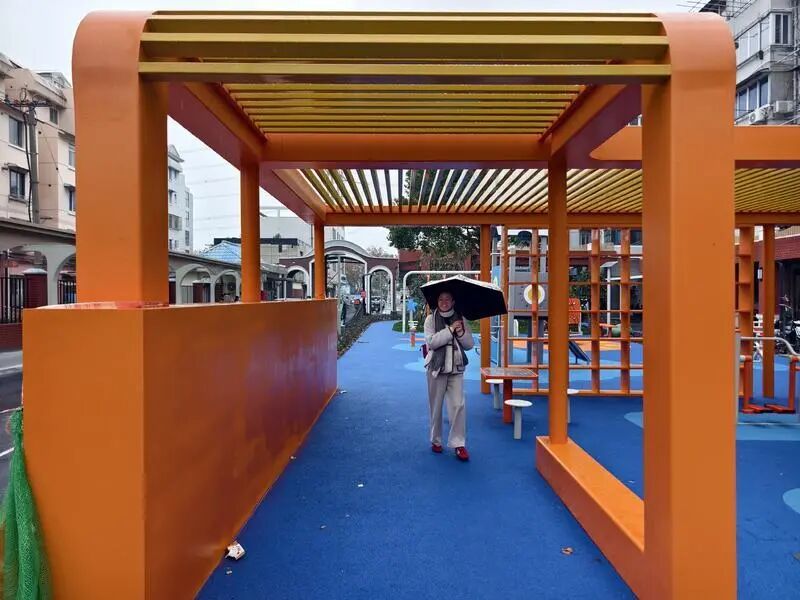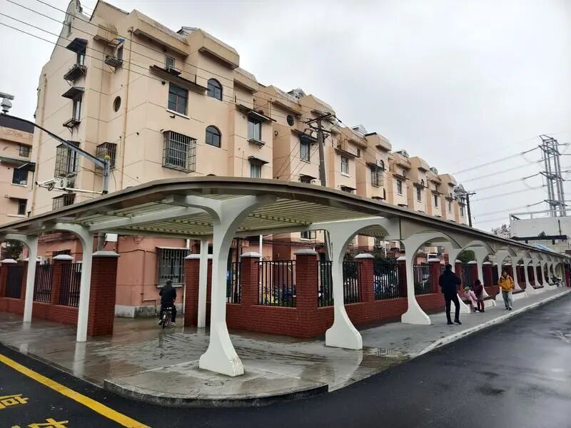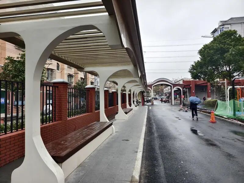 這條連廊是“五八通道”改造項(xiàng)目的重要組成部分,它不僅為居民區(qū)增添了美觀度,更給居民提供了一處遮風(fēng)擋雨、躲避烈日的舒適步行空間。連廊內(nèi)還設(shè)置了若干長椅,方便居民休憩閑聊。