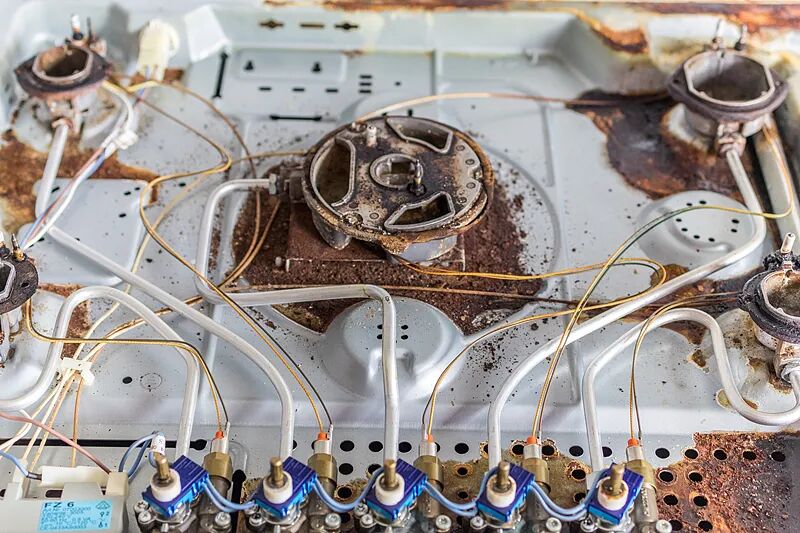?三看外觀:灶具主體變形破損、管路嚴重銹蝕,應(yīng)立即更換。
