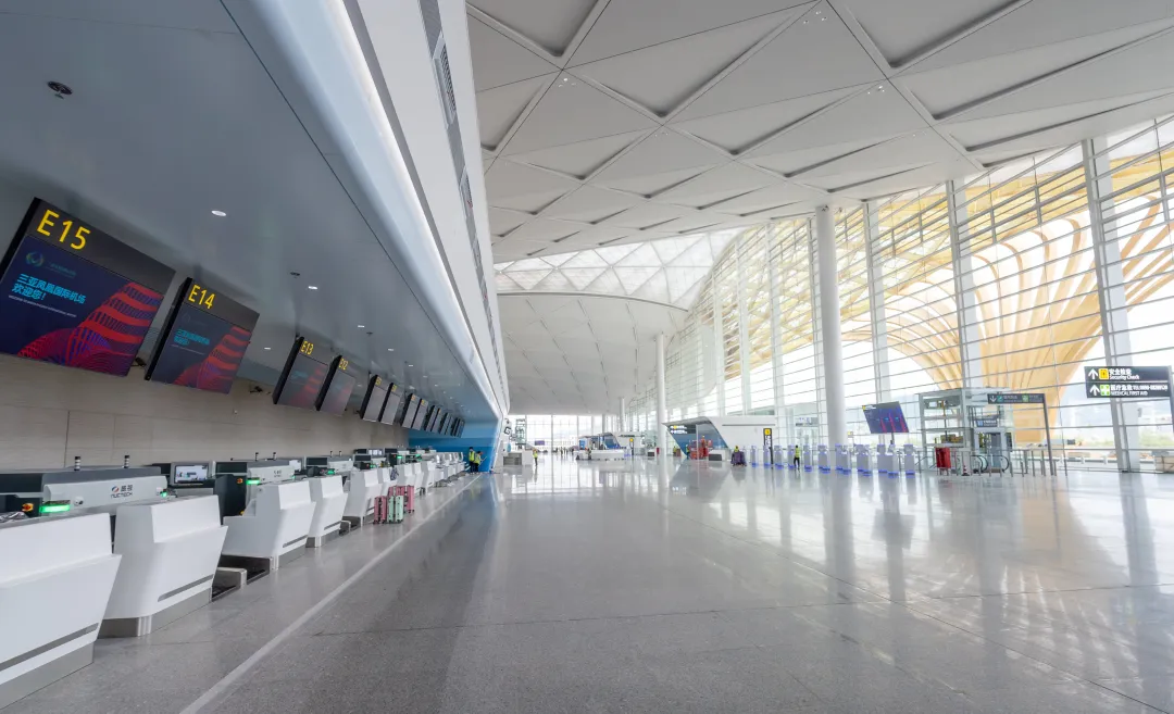 ▲三亞鳳凰機場三期項目T3航站樓出發(fā)大廳
