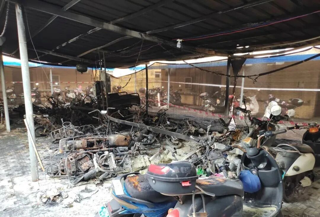 廣西欽州一小區(qū)車棚凌晨失火 六十輛電動(dòng)車受損嚴(yán)重