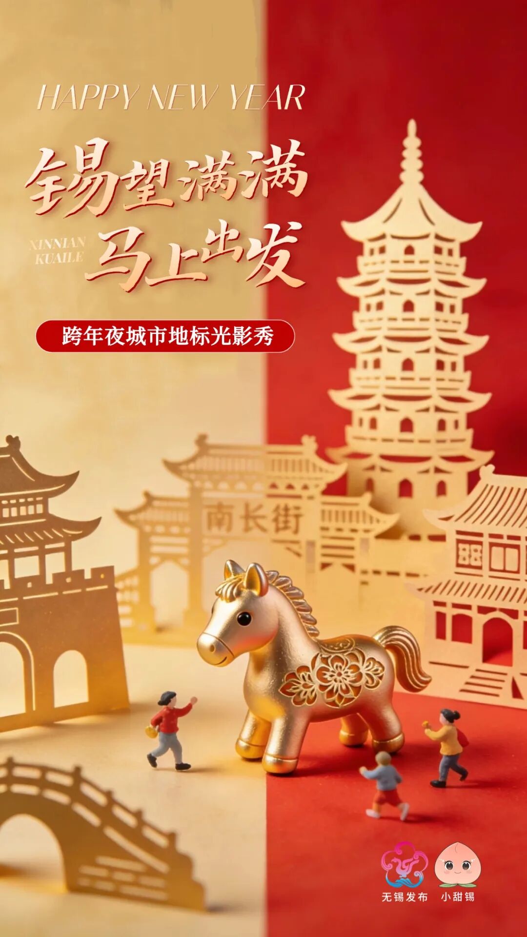 無錫發(fā)布2026,“錫”望滿滿,“馬”上啟程!跨年夜城市地標(biāo)光影秀即將精彩上演,誠邀你一同為2025畫上句點(diǎn),用心愿與目標(biāo)點(diǎn)亮城市地標(biāo),共赴嶄新的2026!