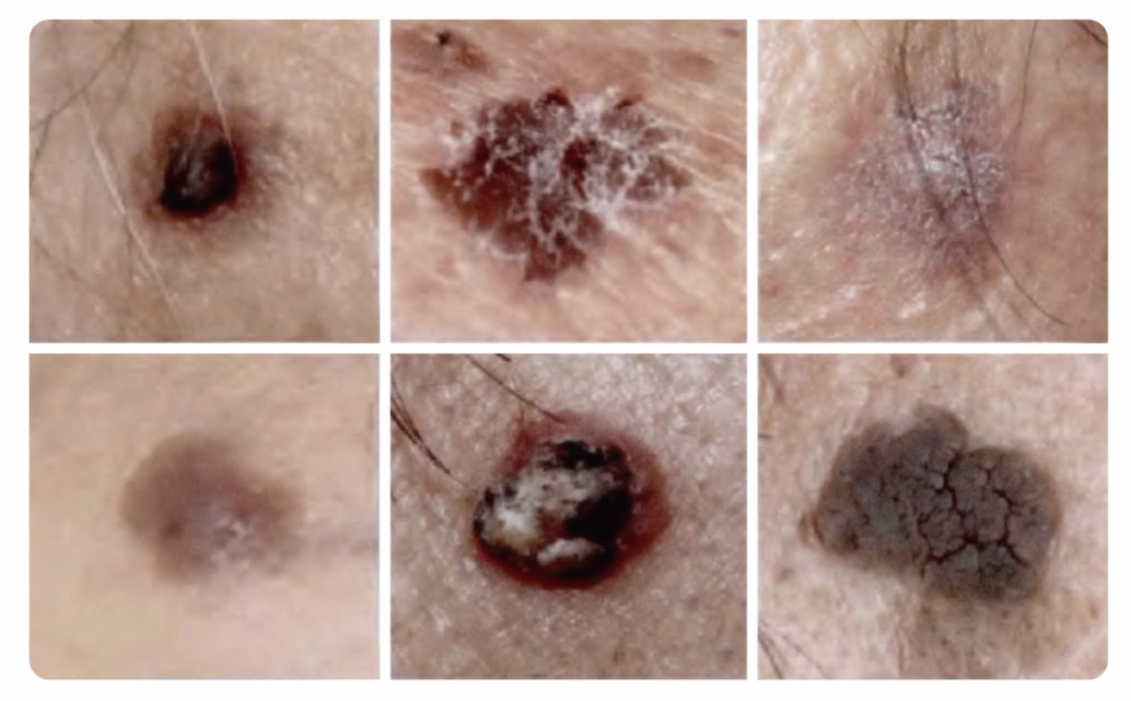 像上圖這類表現(xiàn),可能是皮膚癌中惡性程度較高的惡性黑色素瘤。除了異常黑痣,部分老年朋友面部突然出現(xiàn)的奇怪斑塊,也可能是皮膚癌的信號!