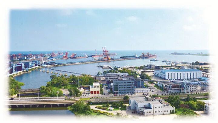河港物資秦皇島中心倉全景。碼頭、貨船與運輸設(shè)施展現(xiàn)了倉儲與港口物流的聯(lián)動布局。