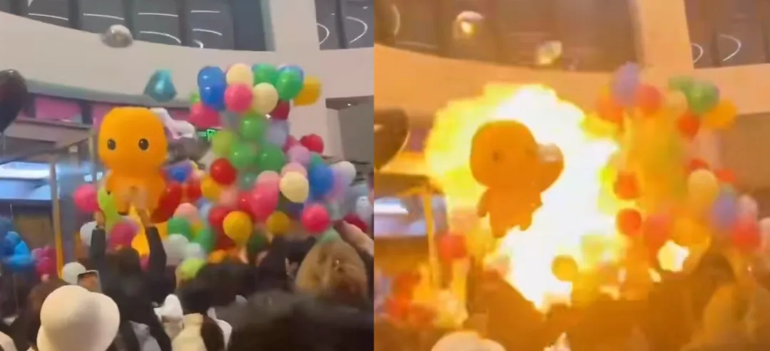 2024年12月31日20時(shí)22分,河南省信陽(yáng)市羊山新區(qū)某商場(chǎng)外,群眾自帶的氫氣球發(fā)生爆燃