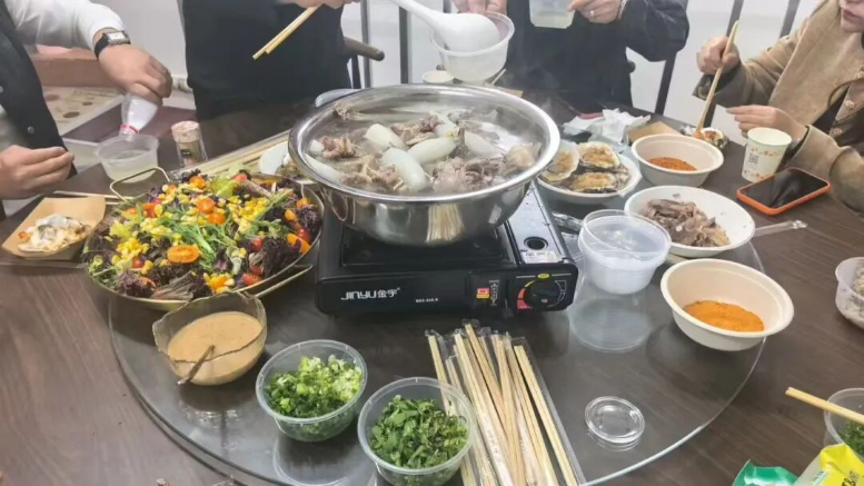開(kāi)業(yè)當(dāng)天,配送中心里十分熱鬧,濃郁的羊肉香味飄散在整個(gè)場(chǎng)地?,F(xiàn)場(chǎng)制作的大煮羊肉湯色潔白如奶、香氣誘人,用炭火烤制的羊肉串外皮焦脆、內(nèi)里鮮嫩、風(fēng)味正宗,吸引了當(dāng)?shù)夭簧俨惋嬈髽I(yè)代表和市民停下腳步品嘗?!罢鏇](méi)想到在東莞能吃到這么地道的西北羊肉,肉質(zhì)緊實(shí)卻沒(méi)有膻味,果然和傳說(shuō)中一樣好!”一位顧客品嘗之后,不停地稱贊。