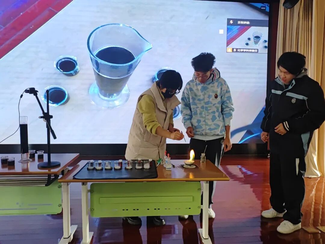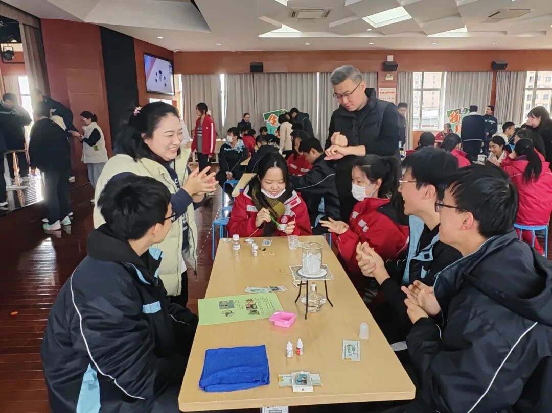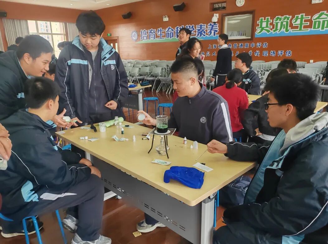 走進(jìn)化學(xué)實(shí)驗(yàn)專場,仿佛置身“魔法實(shí)驗(yàn)室”:“焰色反應(yīng)”中溶劑滴落綻放絢爛火焰,“手工皂”工坊里同學(xué)們調(diào)配專屬香皂,“法老之蛇”實(shí)驗(yàn)里蔗糖、酒精與小蘇打反應(yīng)生成蓬松碳化物,宛如蜿蜒黑蛇……趣味實(shí)驗(yàn)讓同學(xué)們沉浸其中。教師示范后,大家分組自主探索、討論,興奮地動手操作。