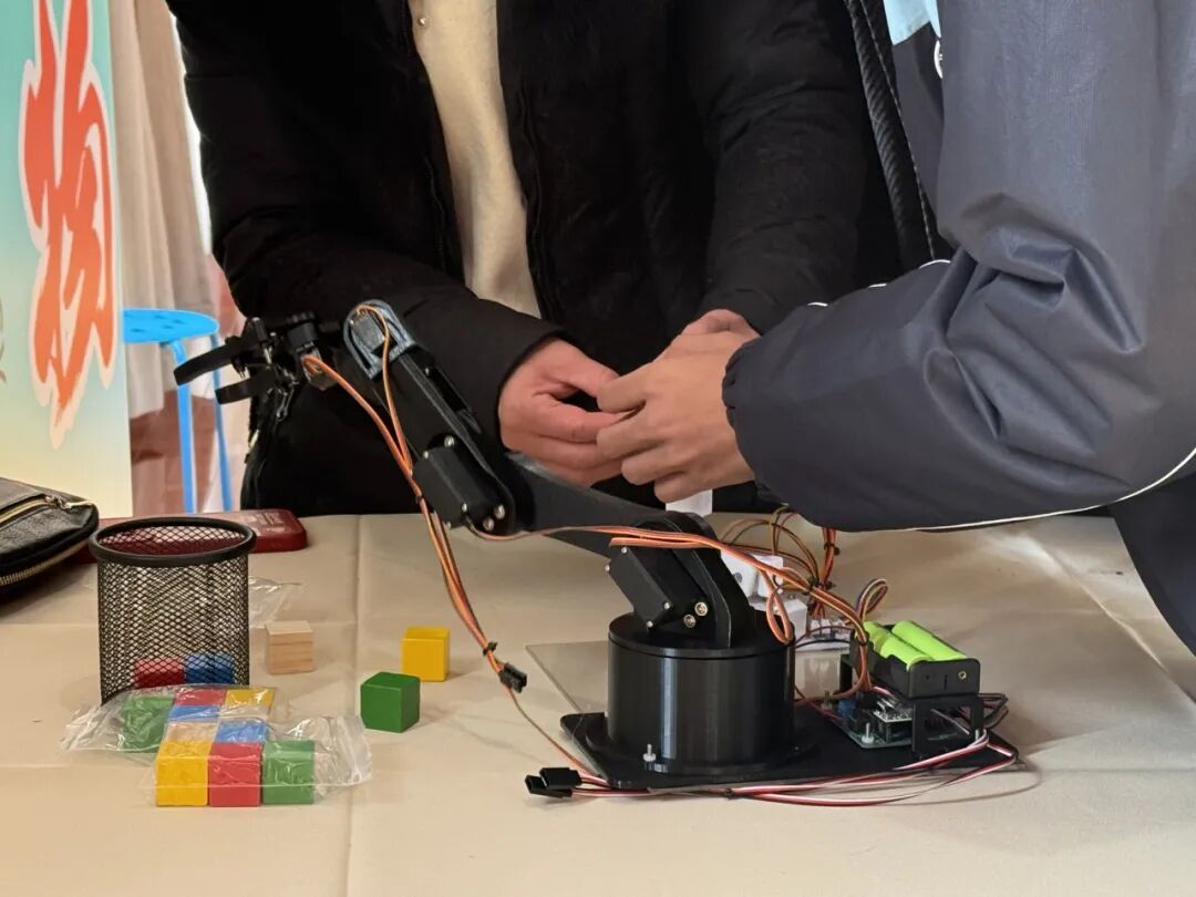 人工智能體驗(yàn)專場中,手勢識別智能小車和遙操作機(jī)械臂成“人氣王”。手勢識別小車通過攝像頭捕捉手掌動作,實(shí)時(shí)控制移動與機(jī)械臂抓取;遙操作機(jī)械臂以模塊化設(shè)計(jì)和低延遲算法精準(zhǔn)復(fù)現(xiàn)操作,展現(xiàn)工業(yè)級遠(yuǎn)程操控潛力,現(xiàn)場歡呼不斷,在同學(xué)們心中播下科學(xué)種子。學(xué)校還聯(lián)動上海天文館,同學(xué)們戴VR設(shè)備即可沉浸式體驗(yàn)“行走的天文館”。