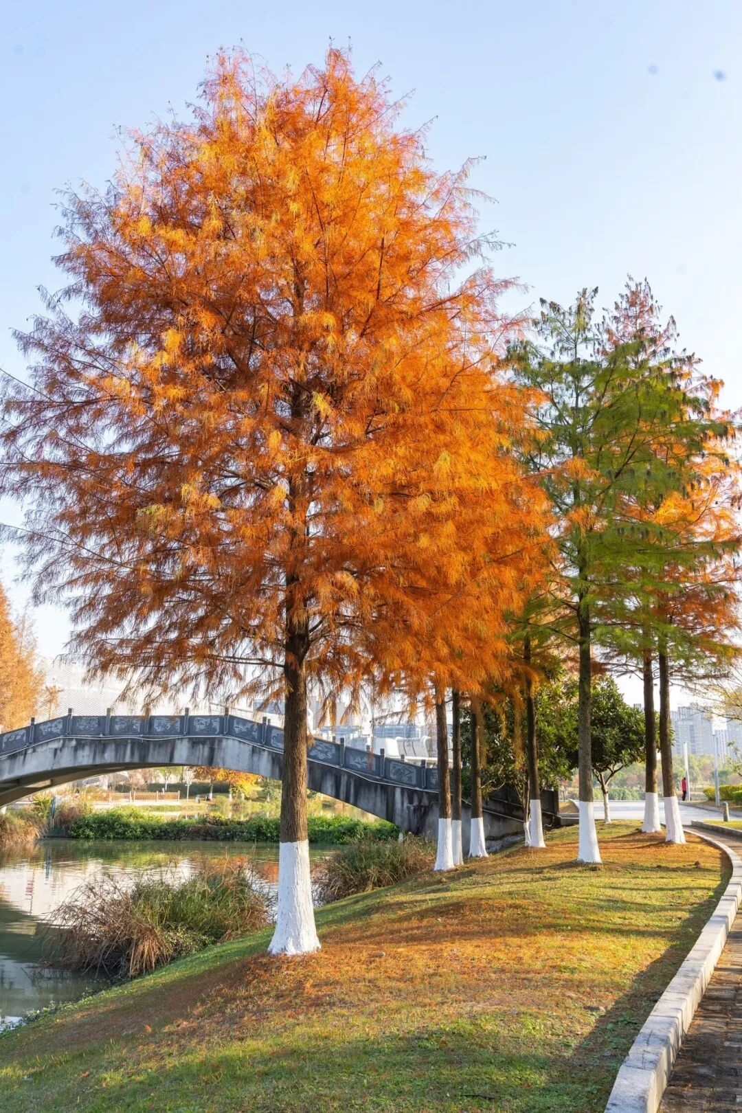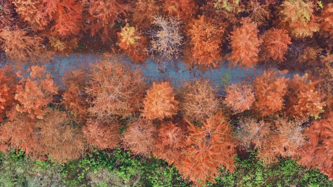 落羽杉是杉科落葉喬木,因羽毛狀葉片冬季變色脫落而得名,耐濕且適應(yīng)性強(qiáng),秋冬季節(jié)葉片會(huì)從綠轉(zhuǎn)為橙紅、褐紅,形成獨(dú)特景觀。其最佳觀賞期為每年12月至次年1月,當(dāng)前正是色彩最濃郁的時(shí)候,美景預(yù)計(jì)可持續(xù)至春節(jié)前后。