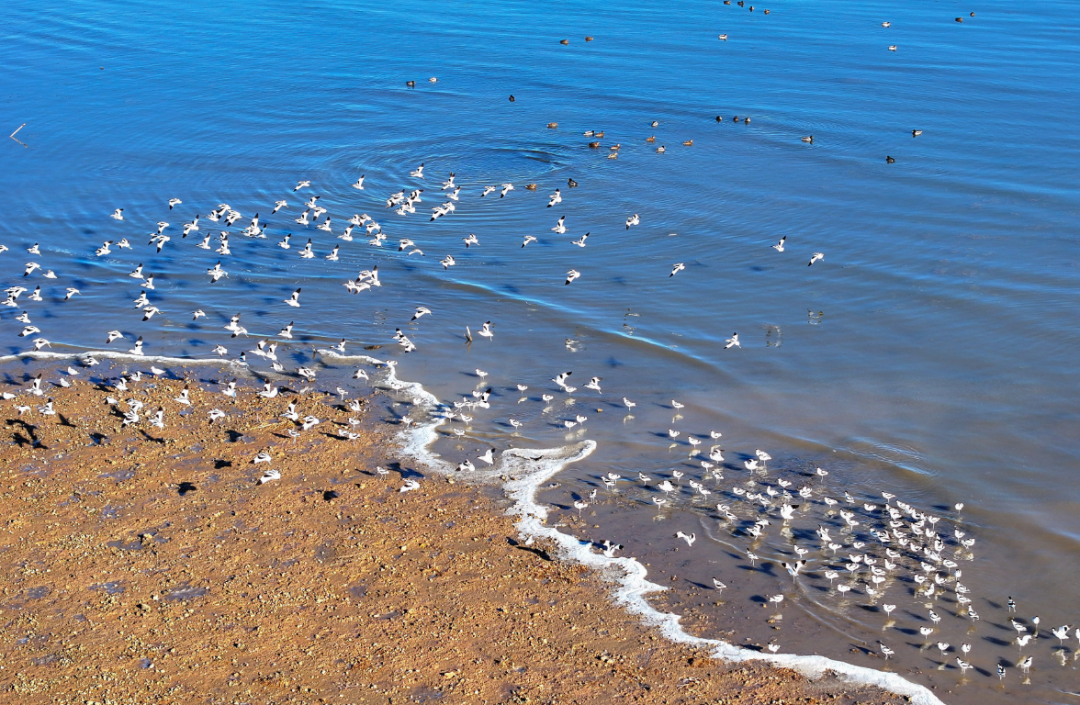 ▲12月26日,一群候鳥在連云區(qū)沿海濕地飛翔、覓食,構(gòu)成冬日一幅美麗的生態(tài)畫卷。記者 王健民 攝