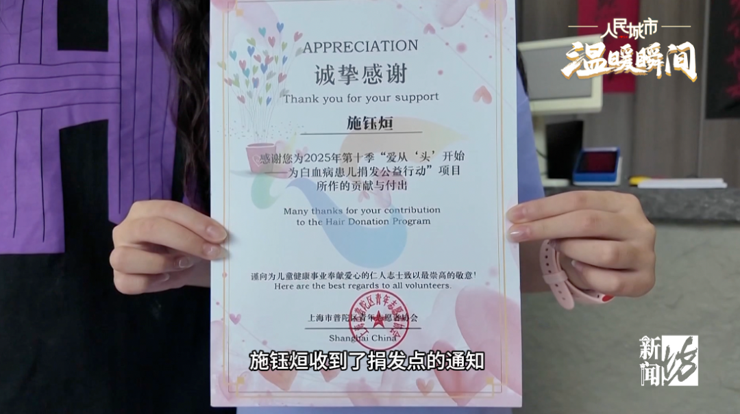 今年8月25日,施鈺烜等待已久的日子終于到來。在崇明區(qū)城橋鎮(zhèn)的一家美發(fā)店,她剪下了40厘米的長發(fā),實現(xiàn)了兒時的愿望。為了完成這個特別的“任務(wù)”,她已堅持蓄發(fā)整整四年。今天的溫暖瞬間,就讓我們聽聽她的故事。