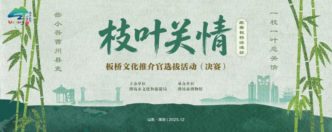 12月27日下午,“枝葉關(guān)情——板橋文化推介官選拔活動(dòng)”決賽于濰坊市博物館收官。經(jīng)初賽嚴(yán)格篩選,18位板橋文化愛好者同臺(tái)角逐,最終6人脫穎而出,榮獲“板橋文化推介官”稱號(hào)。