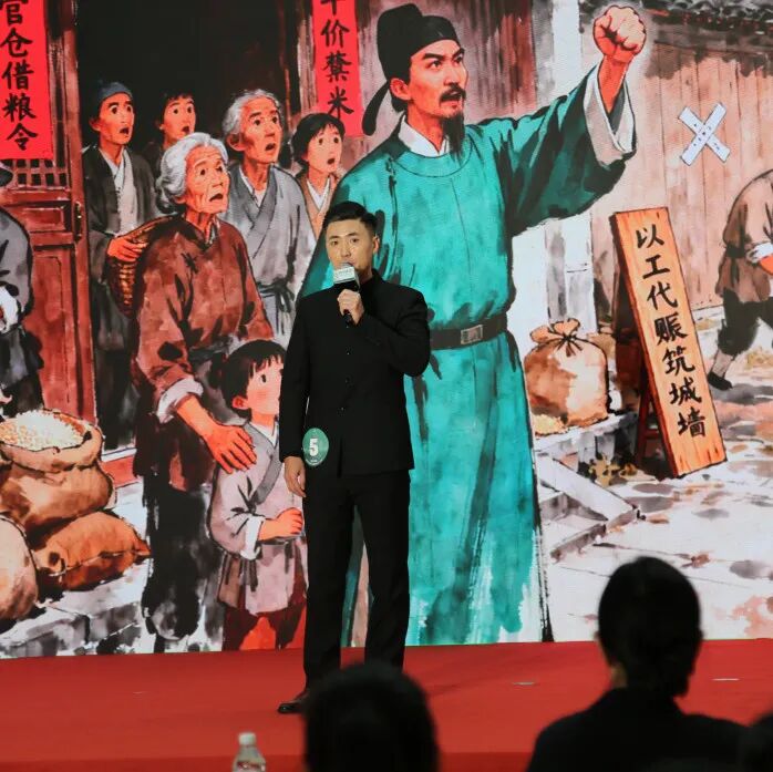 決賽現(xiàn)場,選手們通過不同形象演繹鄭板橋的多重人生:著官服化身“廉吏板橋”,講述開倉賑災(zāi)、為民請(qǐng)命的赤誠故事;著樸實(shí)便裝成為“士人板橋”,重現(xiàn)體察市井、與民同樂的親民姿態(tài);著素雅文士服詮釋“文人板橋”,解讀詩書畫印中的藝術(shù)風(fēng)骨。生動(dòng)的講解與真摯的情感,讓三百年前的濰縣賢令形象鮮活呈現(xiàn),觀眾沉浸式感受其“清風(fēng)正氣、市井情深、墨韻流芳”的立體人格。