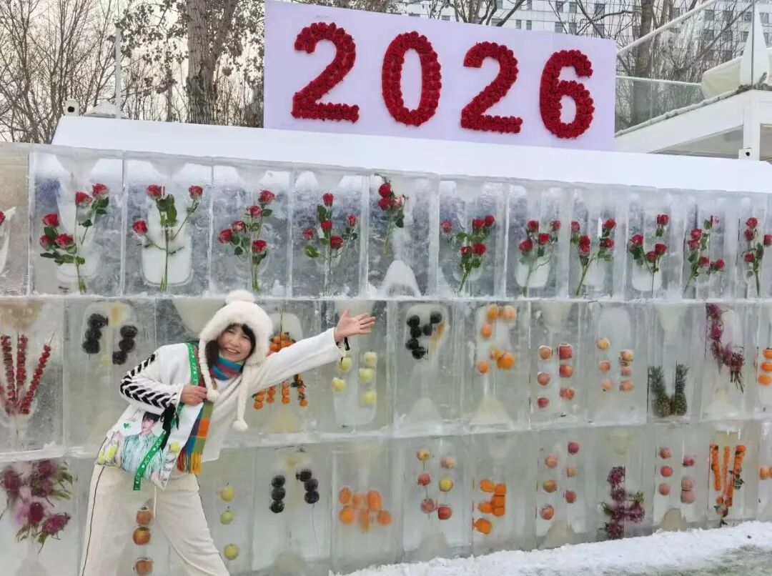 現(xiàn)場精心設計的冰封水果墻、冰封玫瑰花墻、人形雪墻、火鍋小南氣模等網(wǎng)紅景觀,成為年輕游客鏡頭追逐的焦點。