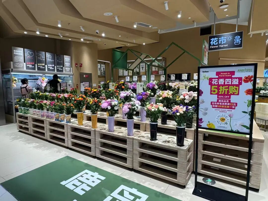 鹿島還給到了鮮花綠植相當(dāng)顯眼的位置——通常在大門口,讓消費(fèi)者一進(jìn)門就有置身花海之感,馬炬曾強(qiáng)調(diào)該品類的重要性:它如今已是獲得幸福感和情緒價值的剛需類目,能讓消費(fèi)者產(chǎn)生“美好”的消費(fèi)體驗(yàn)。