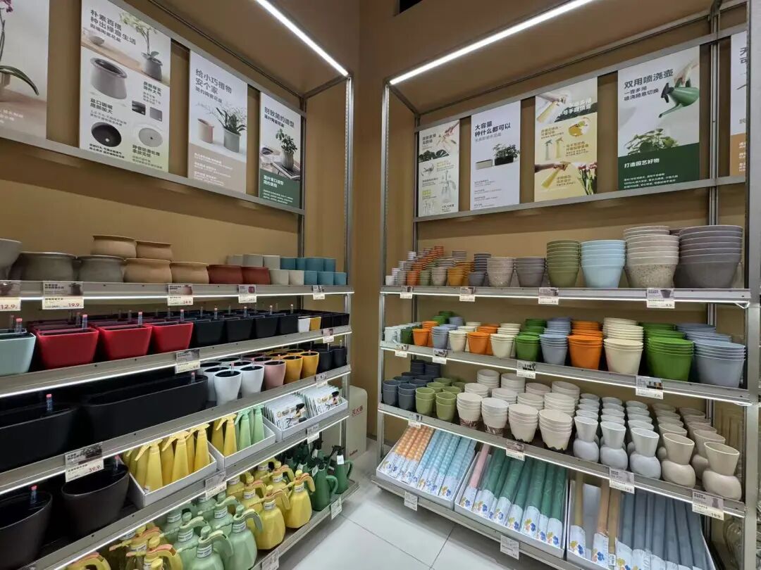 花市內(nèi)陳列的種植用具,與宜家的陳列思路類似,拍攝:36氪