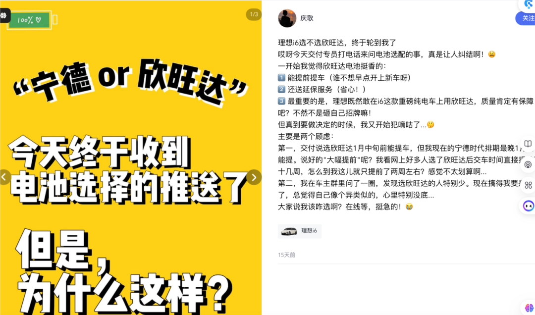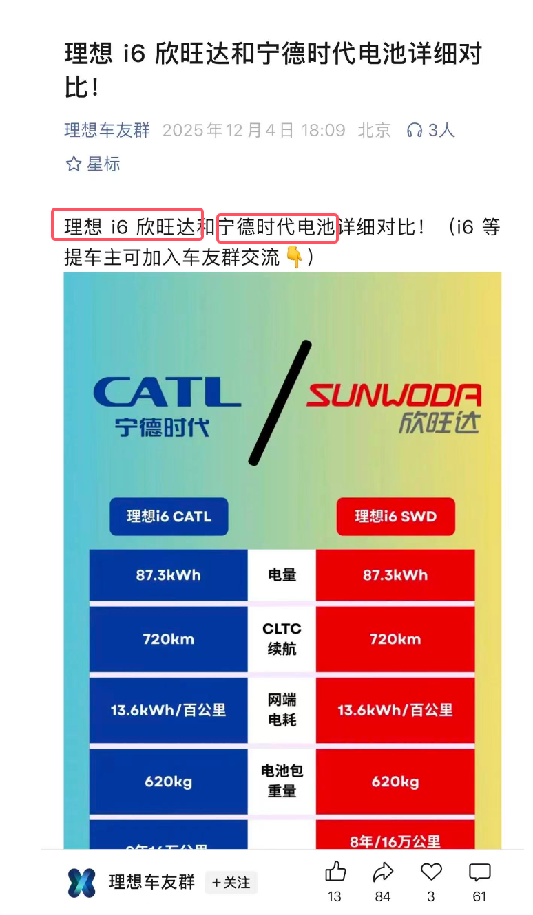 4、據理想車友群公眾號及公開媒體報道,理想汽車2026年的新車仍計劃采用欣旺達電池。訴訟爆發(fā)后,這一情況可能給理想的潛在消費者帶來負面印象。