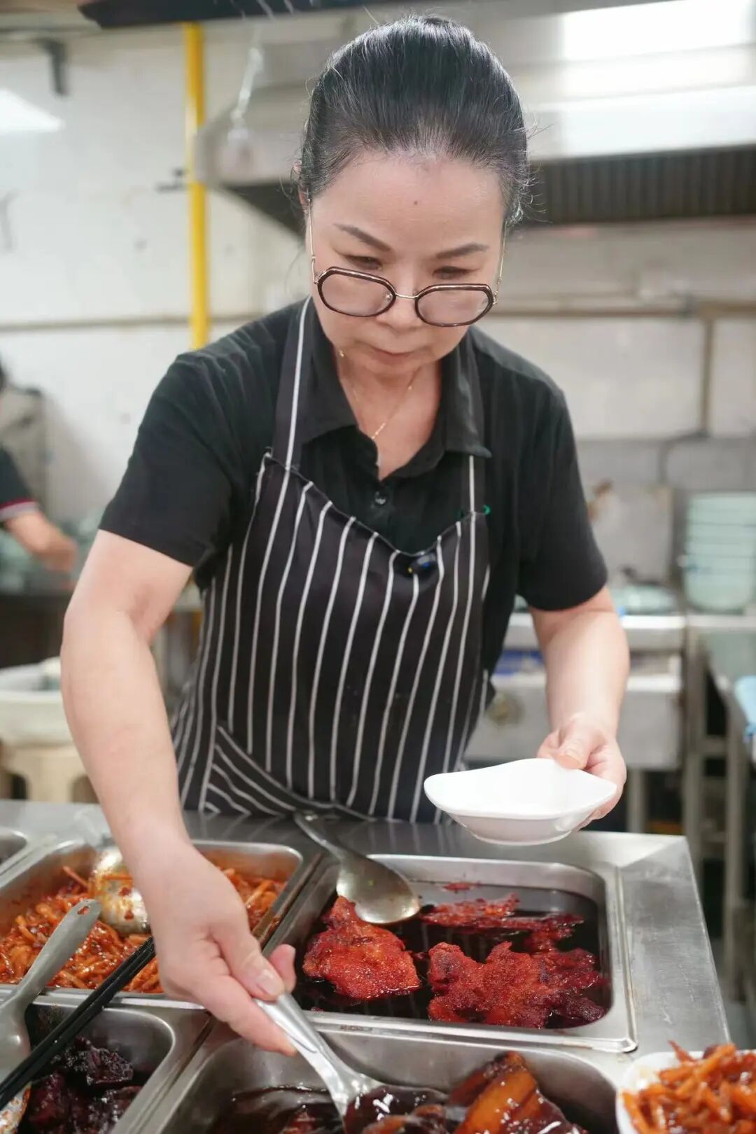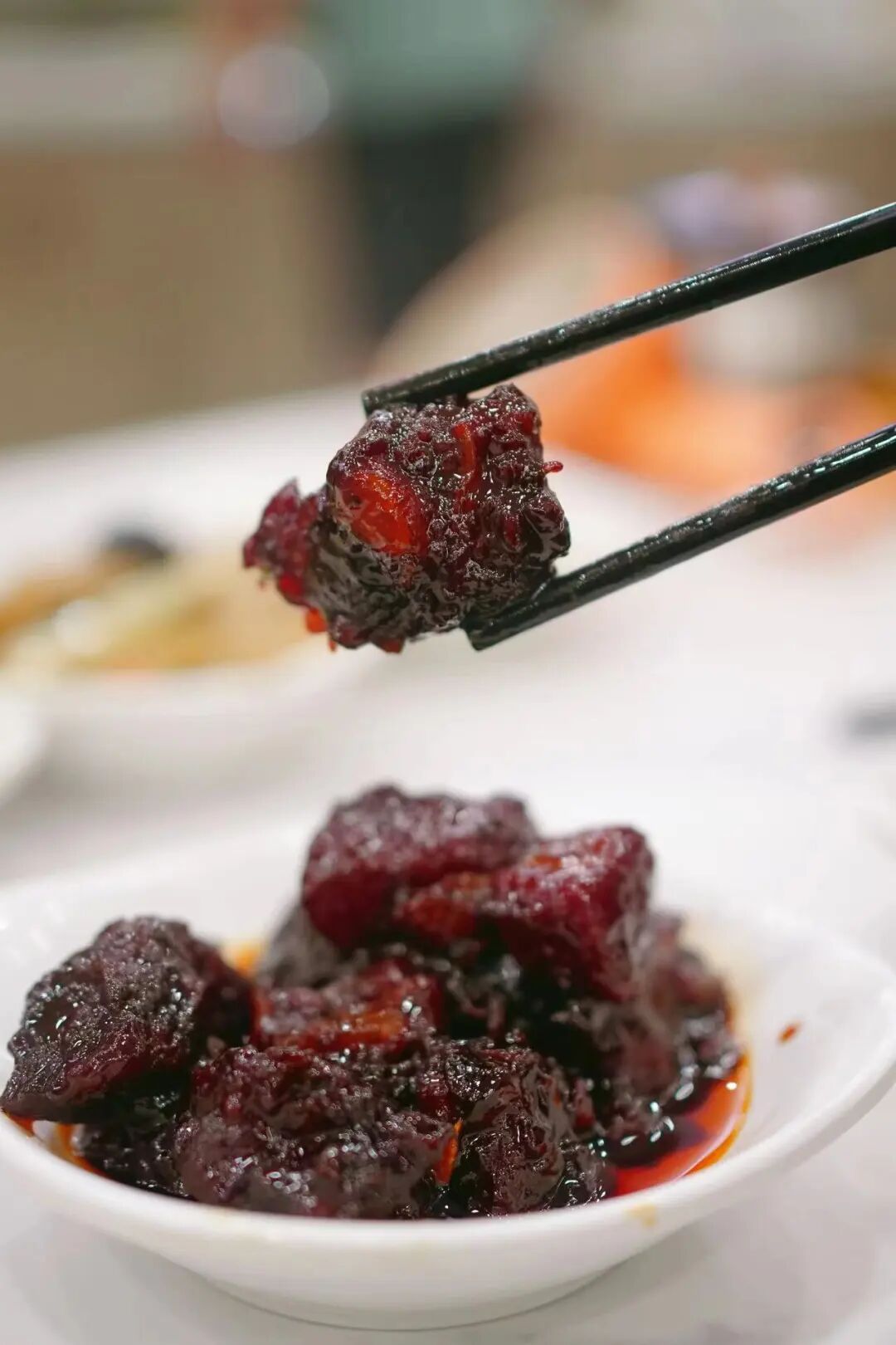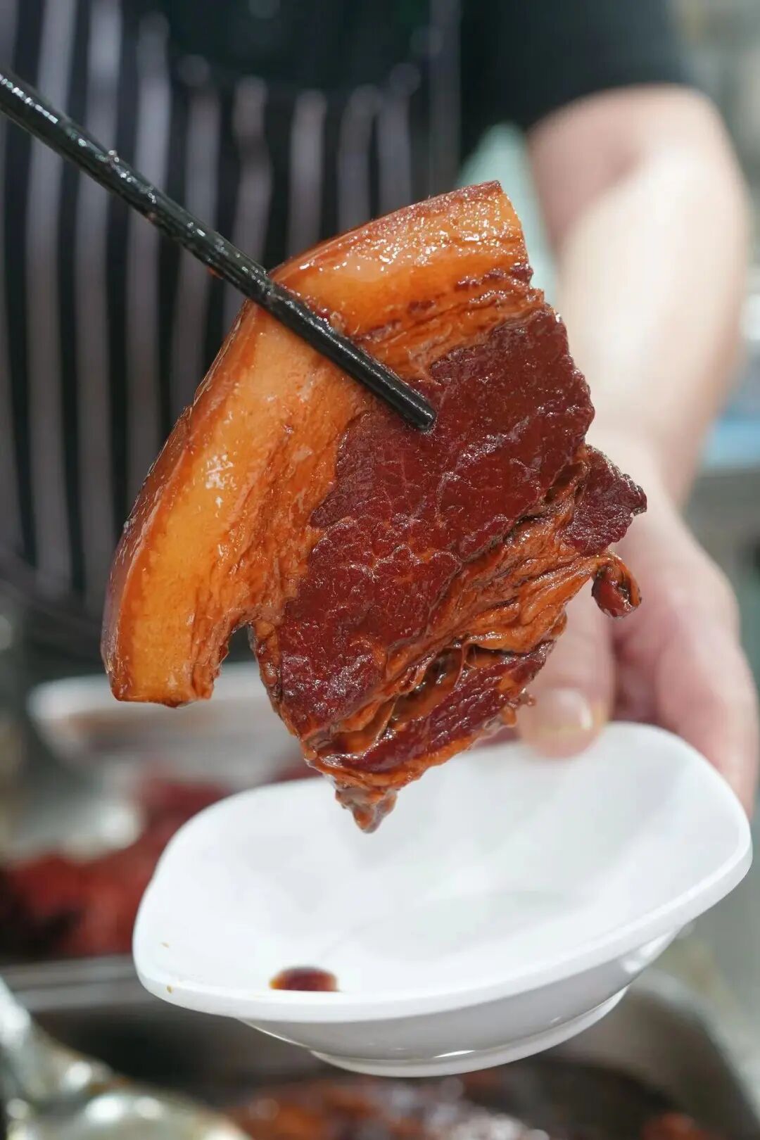 店里的紅燒大排、紅燒塊肉,分量十足,拎起來比臉還大,濃油赤醬的色澤紅亮誘人。