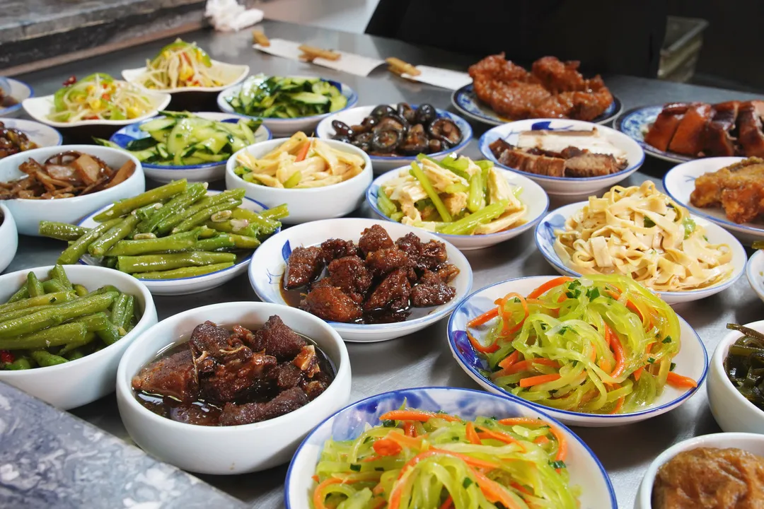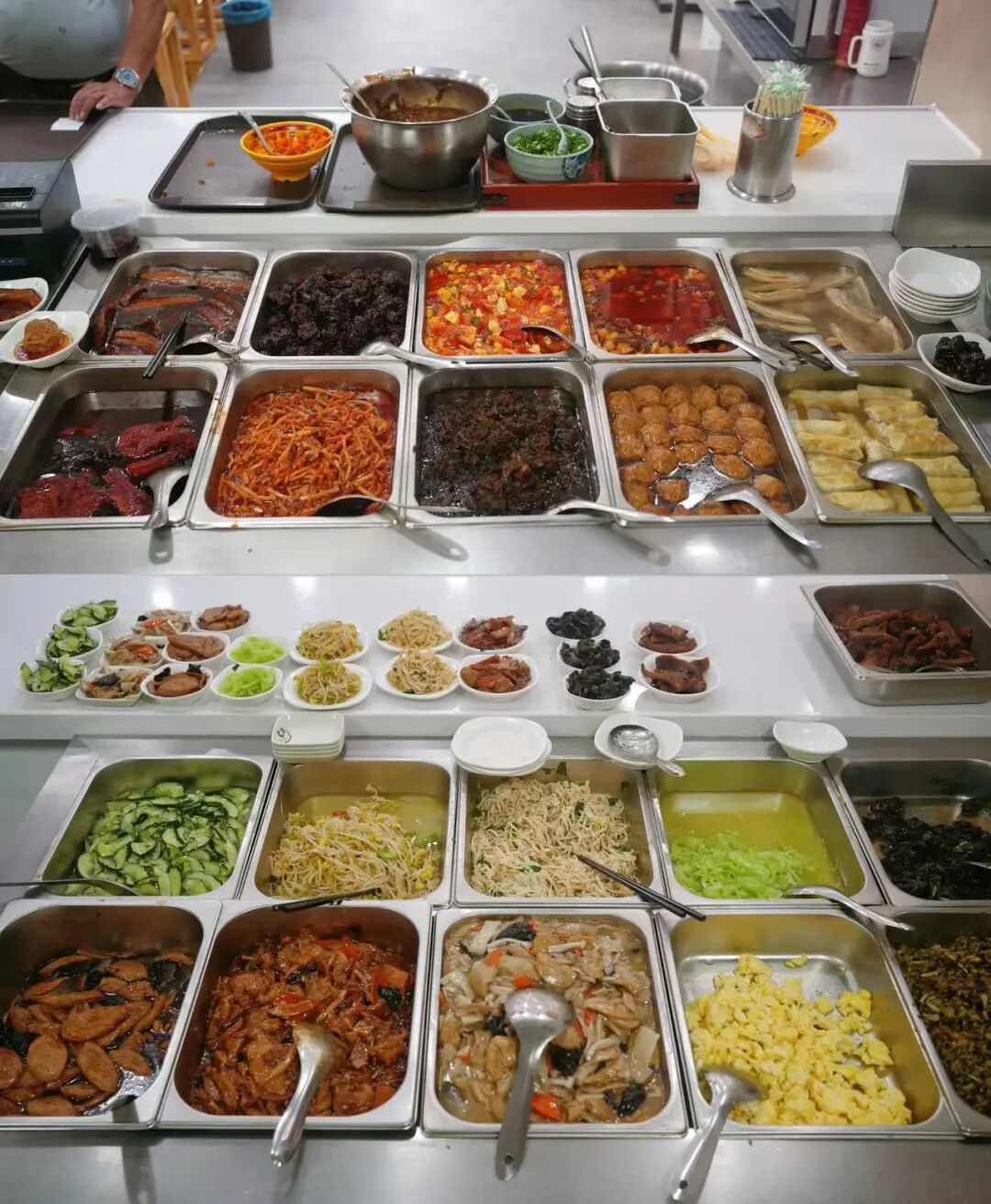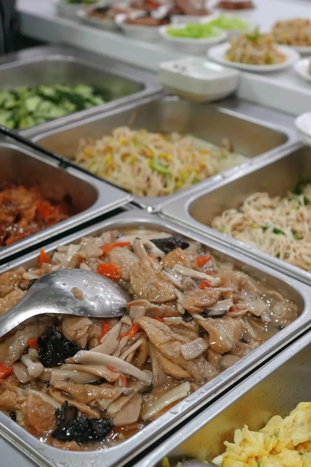 這家店號稱無錫澆頭最多的面館,葷菜、蔬菜各兩排,再加上現(xiàn)炒澆頭,粗略估計有五六十種。