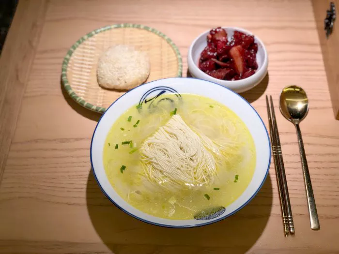 無錫面的極致代表當(dāng)屬銀絲面,面條細(xì)如發(fā)絲,煮好后盛入雞湯,吸滿湯汁的面條軟而不爛,口感絕佳。