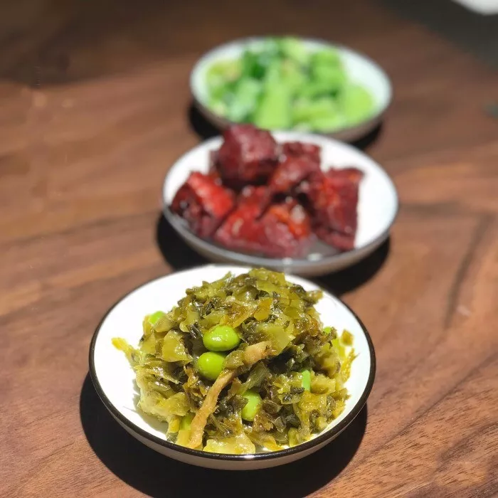 自家釀的肉面筋緊實飽滿,是顧客們最愛的澆頭之一;糖醋小排切得小巧,酸酸甜甜十分入味,每天都早早賣完。
