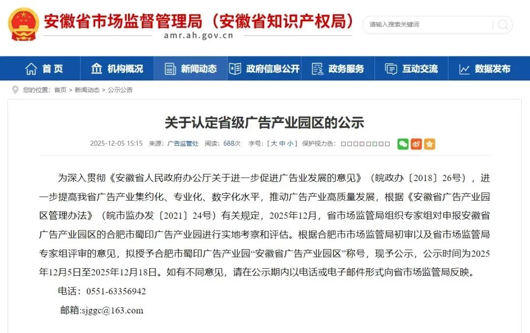 喜獲認(rèn)定!蜀山區(qū)新增省級廣告產(chǎn)業(yè)園區(qū)