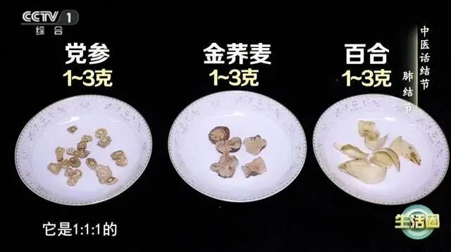 取百合、黨參、金蕎麥各1~3克,用熱水沖泡飲用,能夠舒緩不良情緒、補(bǔ)肺氣、散結(jié),適合肺結(jié)節(jié)人群飲用,也可用于預(yù)防肺結(jié)節(jié)。