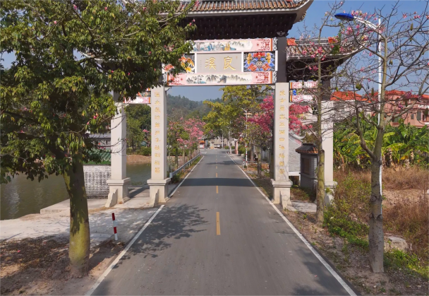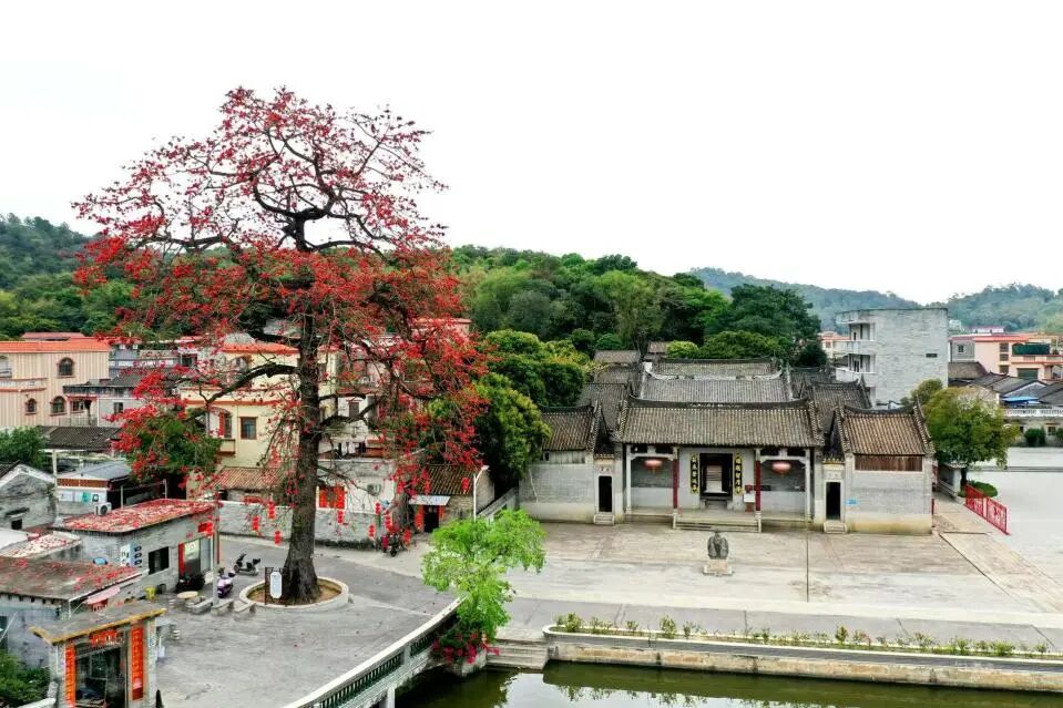 從熱鬧的墟市出發(fā),驅(qū)車不久就能抵達靜謐的良溪古村。此時,村中的異木棉盛花期雖過,但枝頭仍有零星粉色點綴,與山墻、聚心湖、青石板路構(gòu)成一幅淡雅的水墨畫,更顯古村的滄桑與寧靜。