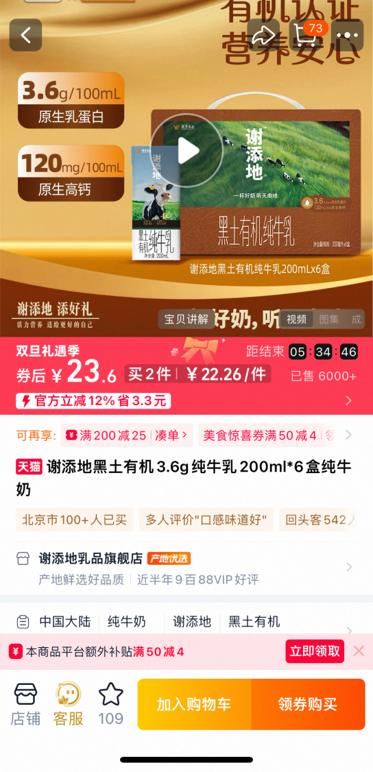 在部分第三方店鋪中,降幅更大:4.3g黑土娟姍純牛乳6瓶26.8元,單瓶?jī)H4.47元;黑土A2β酪蛋白純牛乳10盒26.8元,單瓶?jī)H2.68元,均為原價(jià)的三分之一。