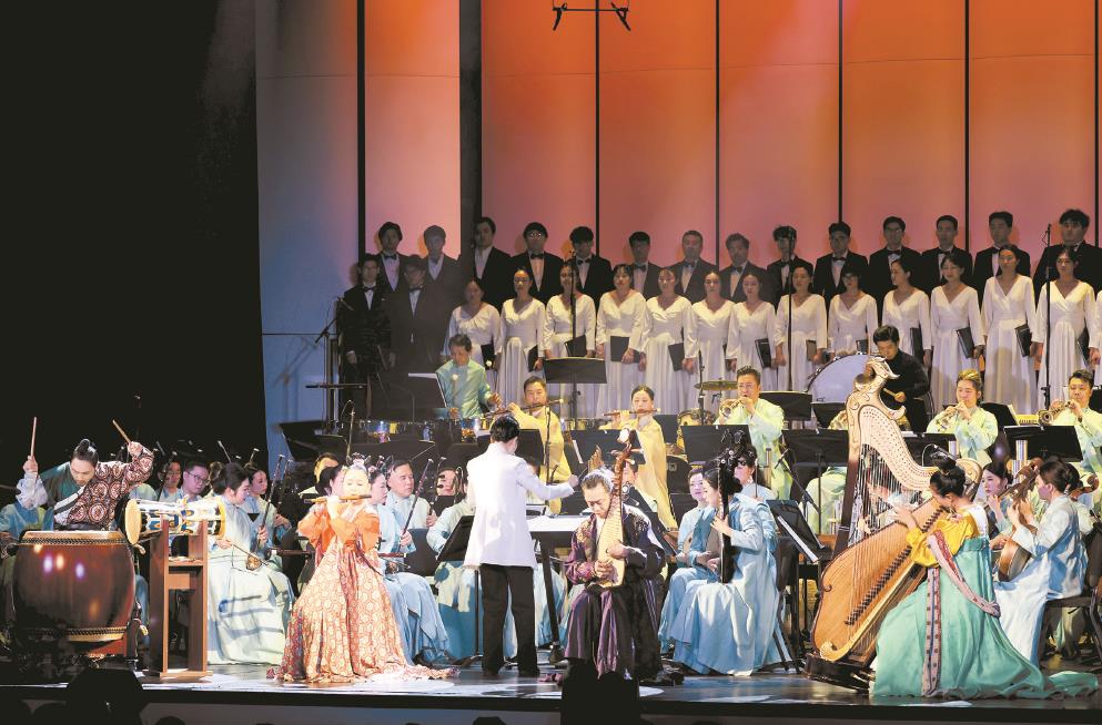 作曲家孔志軒分享了演出的細(xì)節(jié),此次他對(duì)第五與第六篇章進(jìn)行了優(yōu)化?!暗谖迤隆讹L(fēng)骨錚鳴》擴(kuò)充了原有結(jié)構(gòu),通過(guò)層層遞進(jìn)讓風(fēng)骨的內(nèi)涵更加立體豐滿;第六篇章《星河共潮》則精簡(jiǎn)了結(jié)構(gòu),細(xì)緻打磨各部分的音樂形象,核心是凸顯中華民族屹立不倒的民族氣節(jié)?!?/p>