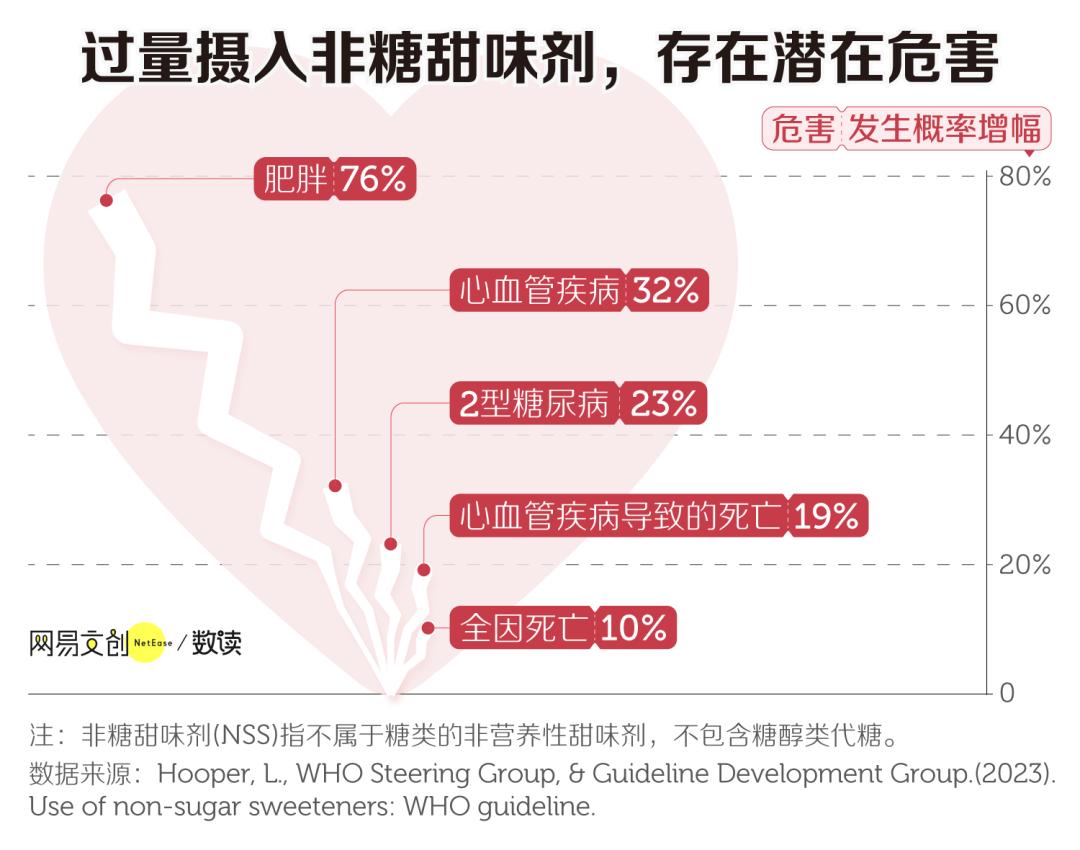 指南還指出,長期使用非糖甜味劑可能產(chǎn)生潛在不良影響,如增加成人患2型糖尿病、心血管疾病的風(fēng)險,全因死亡率也會上升10%。