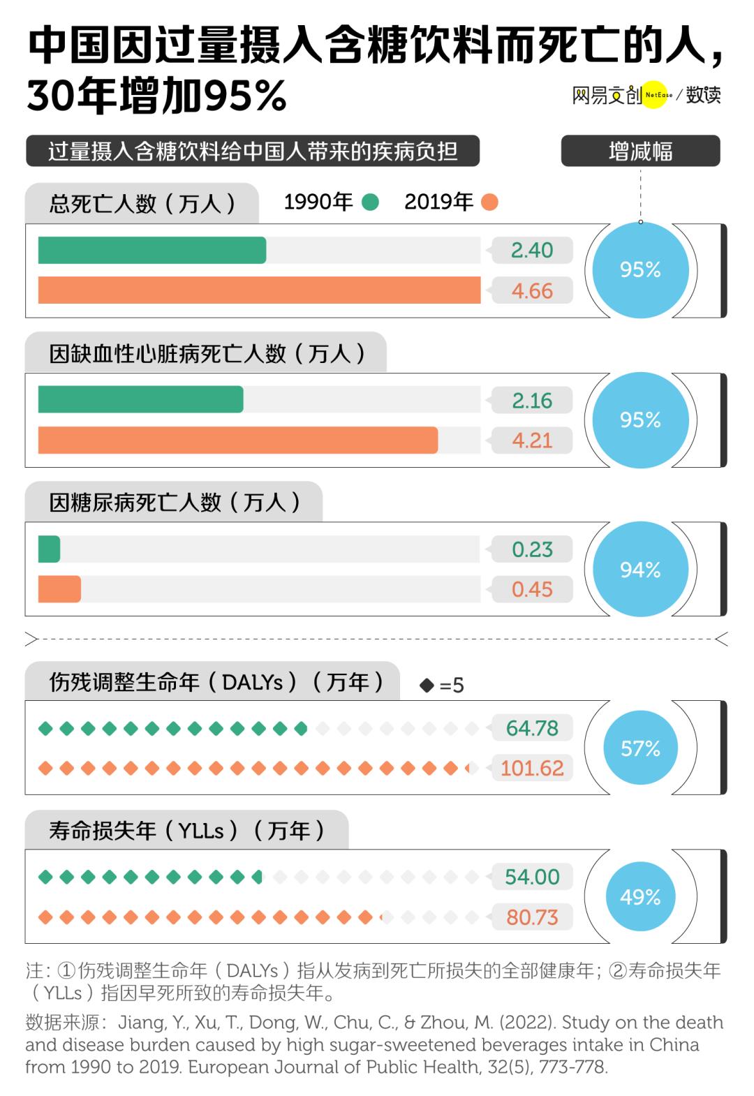 中國疾控中心研究顯示,2019年中國因過量攝入含糖飲料死亡的人數(shù)達4.66萬,較1990年顯著增加95%。
