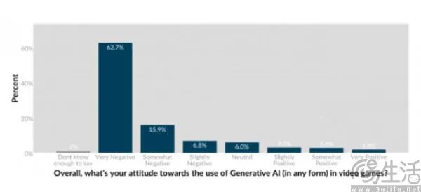 可見,“AI生成”在玩家社區(qū)幾乎成了“過街老鼠”。游戲研究公司Quantic Foundry的調(diào)查顯示,63%的玩家對游戲開發(fā)中使用生成式AI持“非常負(fù)面”態(tài)度,僅7.6%的玩家表示認(rèn)可。