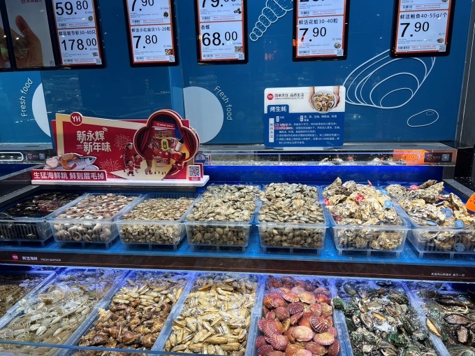 在全面提升商品品質(zhì)的同時(shí),門(mén)店堅(jiān)定地履行“優(yōu)質(zhì)平價(jià)”的承諾。對(duì)于高頻民生商品,永輝通過(guò)優(yōu)化供應(yīng)鏈,確保在同等品質(zhì)下價(jià)格更優(yōu)惠,讓品質(zhì)生活不用花高價(jià)。以江寧寶龍店為例,蔬果區(qū)的霜打白菜售價(jià)0.79元/斤,七寶青0.99元/300g,砂糖橘3.99元/斤,五谷雜糧蛋20枚9.9元,水產(chǎn)區(qū)鮮活淡水鱸魚(yú)13.9元/條,鮮活花蛤每斤7.9元。