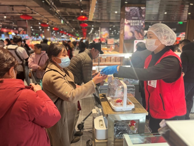 暖心烘焙和民生好物同時(shí)發(fā)力,為消費(fèi)者帶來(lái)雙重驚喜。烘焙區(qū)主打高顏值和好口感兼具的產(chǎn)品,草莓盒子奶油蛋糕、抹茶紅豆舒芙蕾、法式水果塔、紅絲絨慕斯蛋糕等甜蜜甜點(diǎn),搭配核桃滿滿、黃油年糕、牛油果味綠豆糕等特色品類(lèi),成為治愈日常的美味擔(dān)當(dāng)。