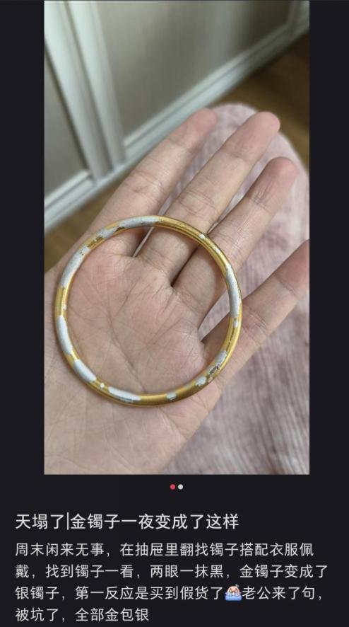 看似厚重的金鐲子,內(nèi)里竟藏著厚實(shí)的銀胎。(圖/小紅書(shū)截圖)