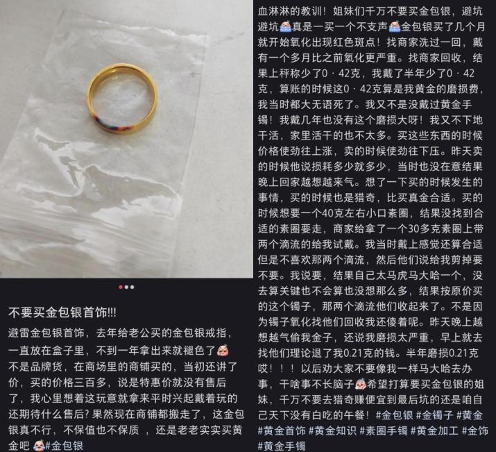 旭君一度很焦慮,社交媒體主頁(yè)全是判斷是否被偷金的“偏方”,還擔(dān)心金包銀閑置泛紅,每天都要看盒子。