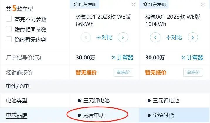 深藍財經(jīng)發(fā)現(xiàn),2021款至2023款極氪001 WE 86車型的電芯供應(yīng)商均為威睿電動,而其他版本則采用寧德時代電芯。值得注意的是,2023款搭載寧德時代電池的車型未參與此次更換活動。