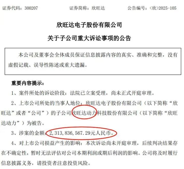 23.14億元的索賠金額對欣旺達而言舉足輕重,相當于其2023年和2024年歸母凈利潤總和(25.44億元)的91%,若敗訴將嚴重影響公司業(yè)績。