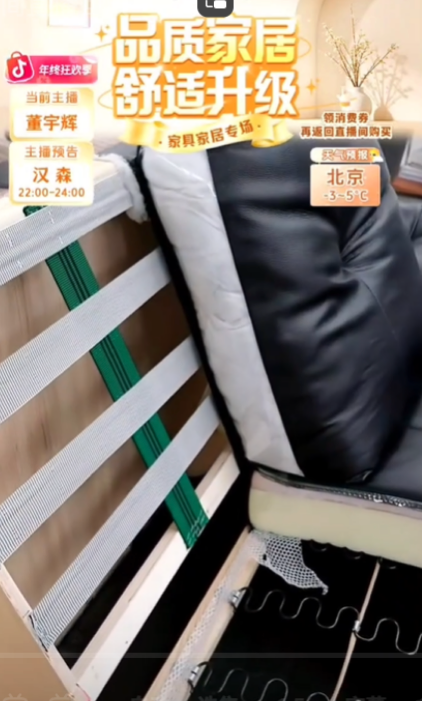 同時,董宇輝還在直播間拆解多款沙發(fā)、床等產(chǎn)品,逐層講解材質(zhì)與結(jié)構(gòu)。