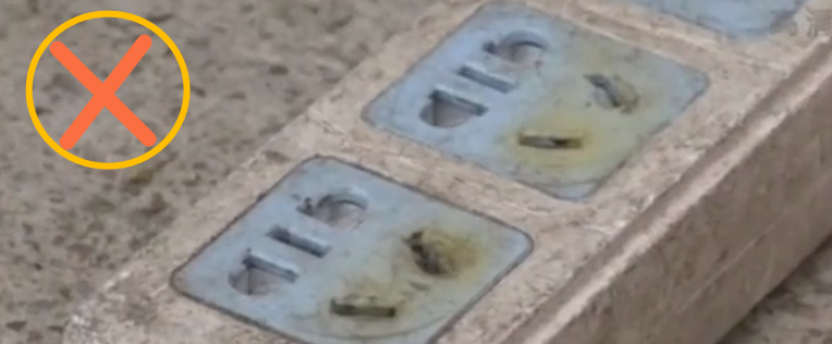 萬用孔插座的接片與電器插頭接觸面過小,容易導(dǎo)致接觸片過熱,進(jìn)而引發(fā)火災(zāi)。