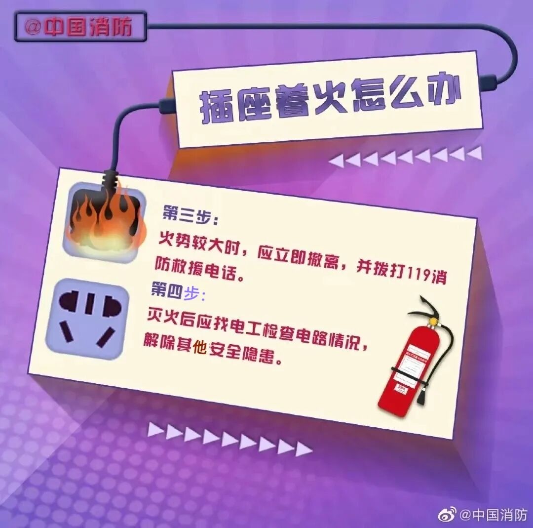 若遇到插排著火,正確的處置步驟是什么?一起來看圖了解。
